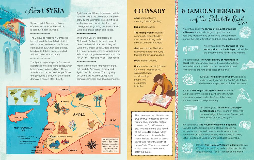 Forced to take shelter when their Syrian city is plagued with bombings, young Nour and her cousin begin to bravely build a secret underground library.