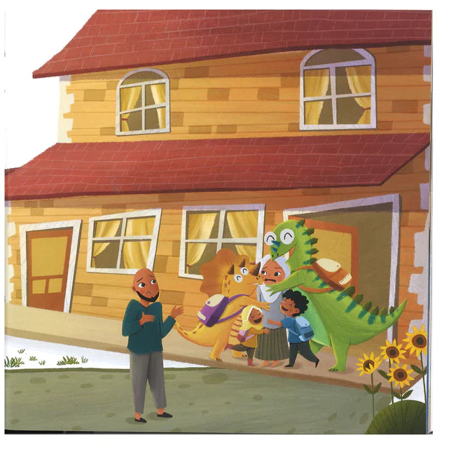 A ROARSOME RHYMING BOOK that follows twin brother and sister as they leave a museum, pondering what life would be like if dinosaurs were alive and if they were Muslims too.