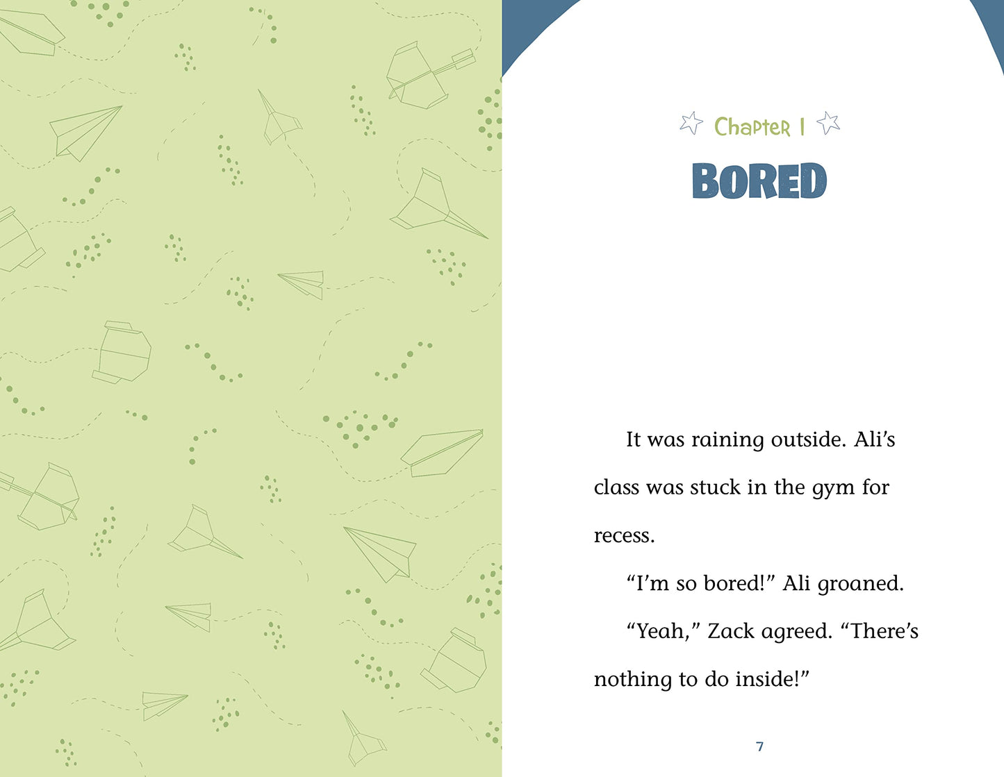 Ali Tahir joins in a paper airplane contest with a surprise twist. On a rainy day, Ali brings the fun to indoor recess by sharing his talent for building paper airplanes with his friends. But in a contest to see whose plane can fly farthest, Ali is baffled by the results. Will airplane expert Ali flop or come out on top? Ali the Great, by Yasmin author Saadia Faruqi, is a charming chapter book series about Pakistani American second grader Ali Tahir. Ali's big ideas will resonate with young readers who believe that every problem has a creative solution--you just have to find it!