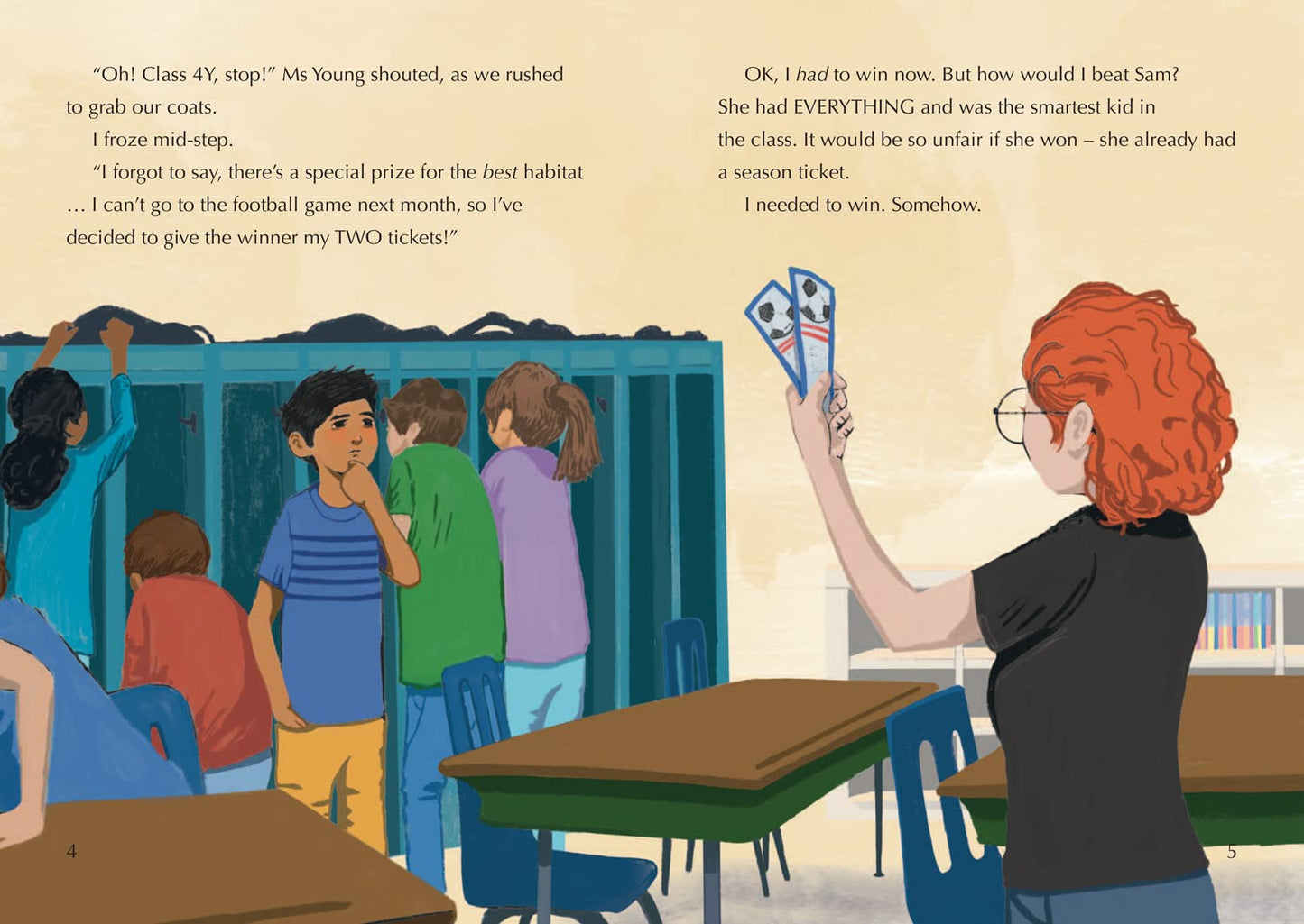 Mustafa never wins anything. Sam, the teacher’s pet, is always the class competition champion. But when Mustafa finds out the prize for the latest school project is tickets to a football game, he has to win.